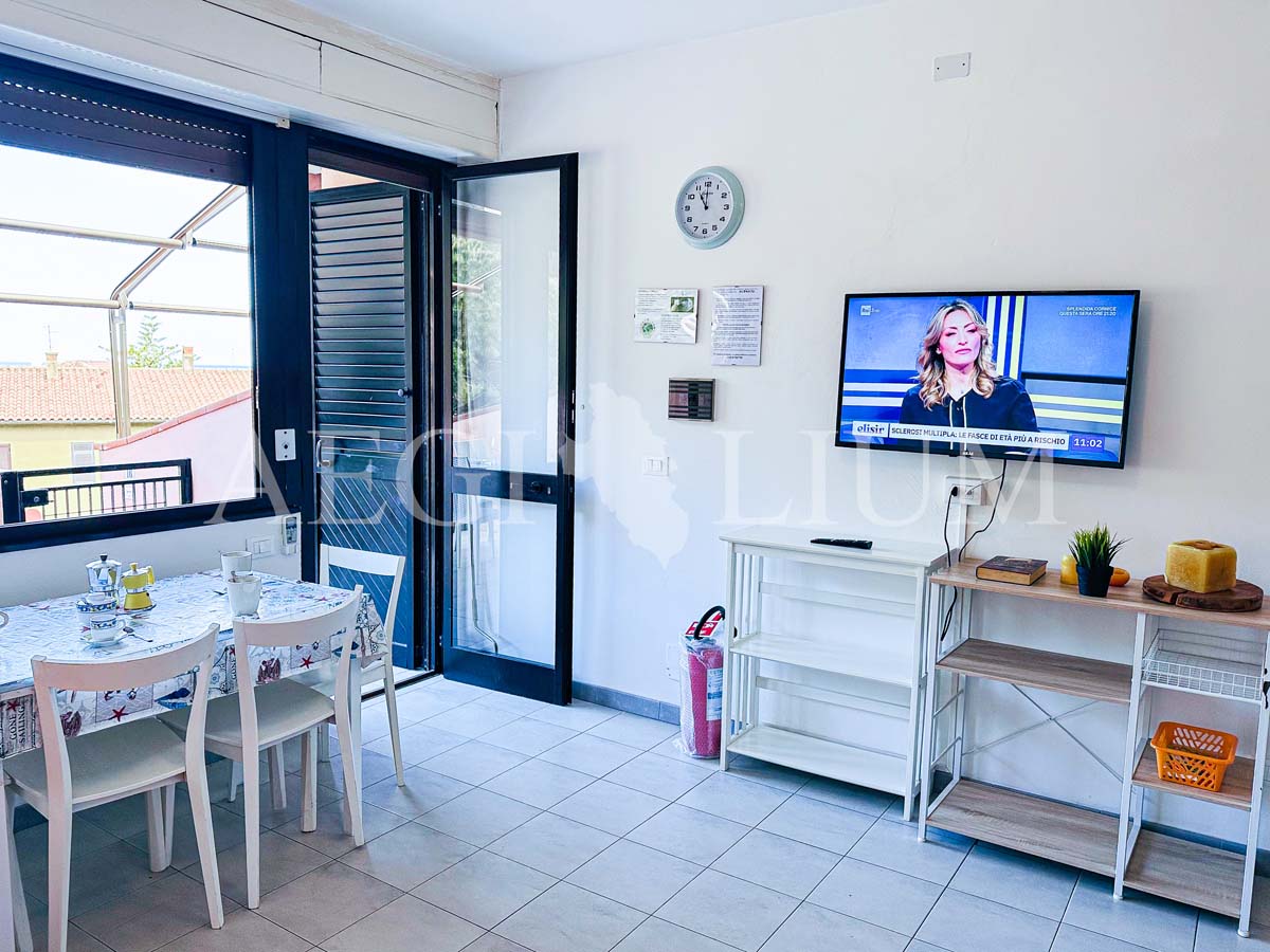 L'appartamento ha un arredamento moderno ed è composto da: una camera con un letto matrimoniale ed un letto singolo con tv, ventilatore a soffitto ed ARIA CONDIZIONATA, soggiorno con angolo cottura con piano cottura ad induzione (usare al massimo due fuochi contemporaneamente), frigorifero con freezer, divano letto composto da due letti singoli accoppiabili a matrimoniale, tv 40'', ventilatore a soffitto ed ARIA CONDIZIONATA, bagno con doccia nella camera matrimoniale e lavatrice, terrazzo (12mq circa) attrezzato per mangiare fuori, un posto auto nel campo sportivo.