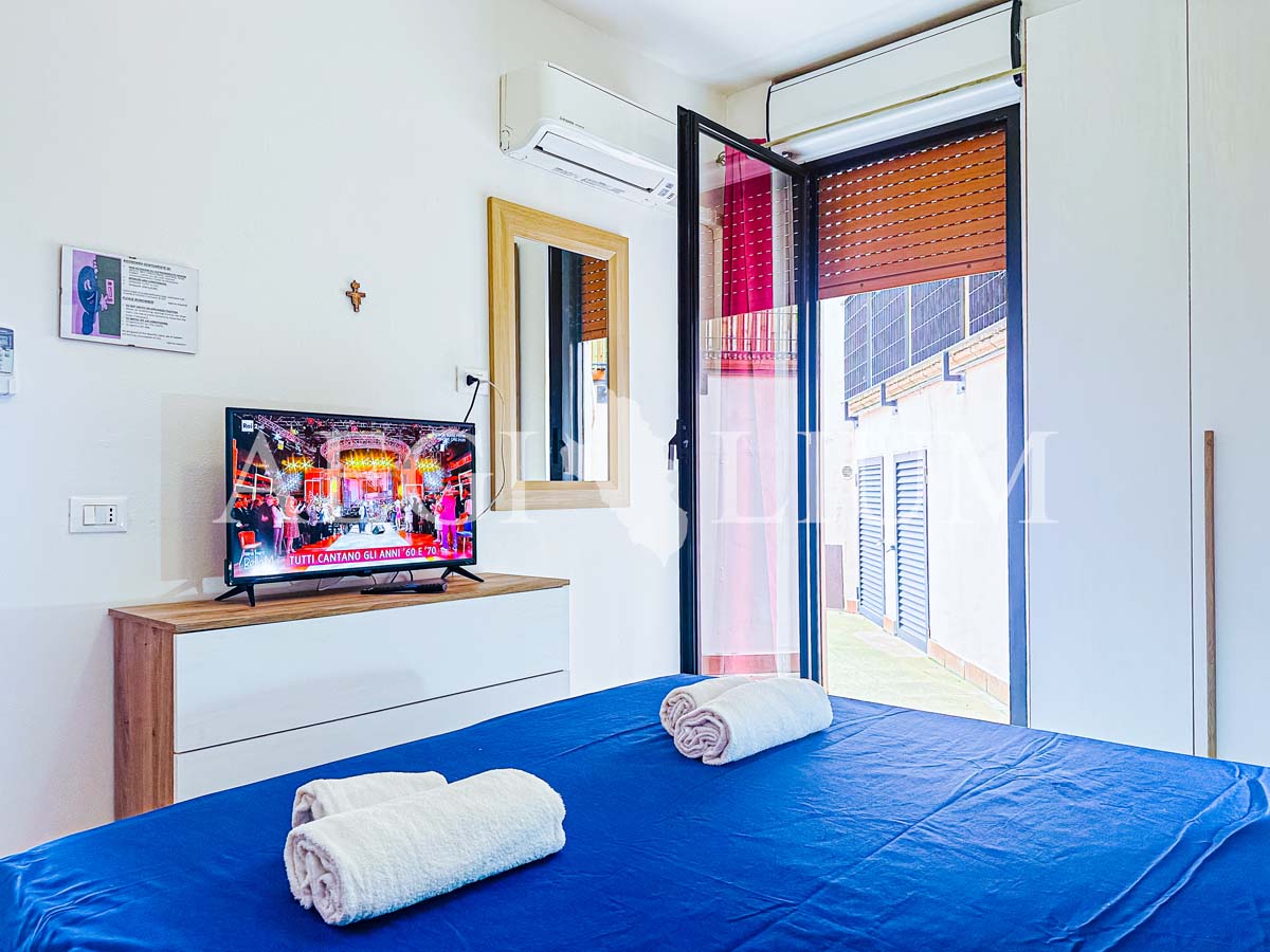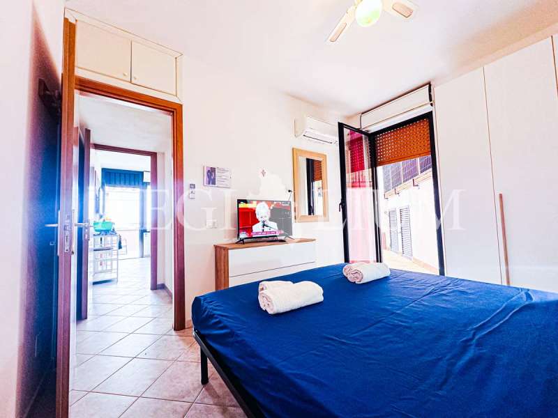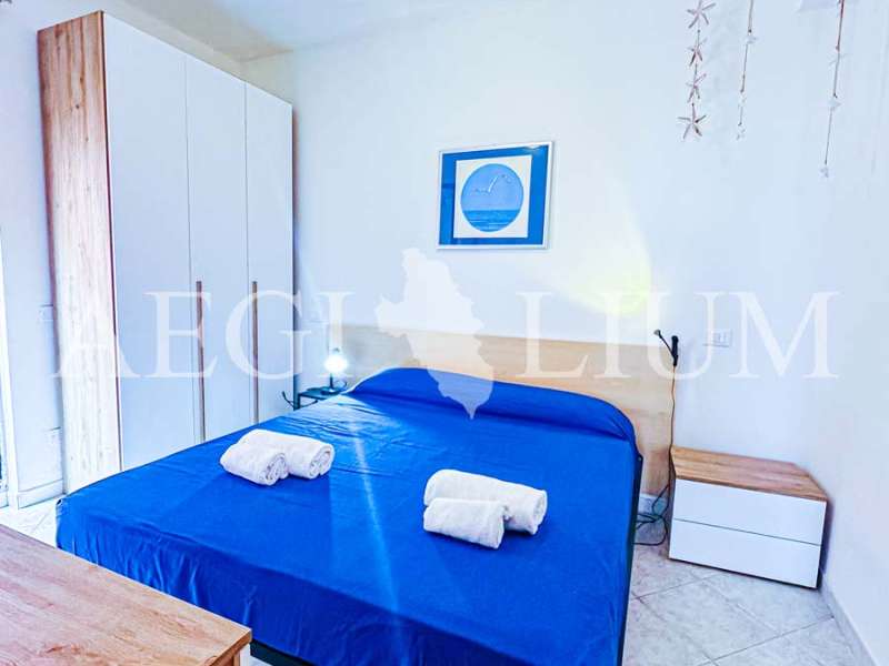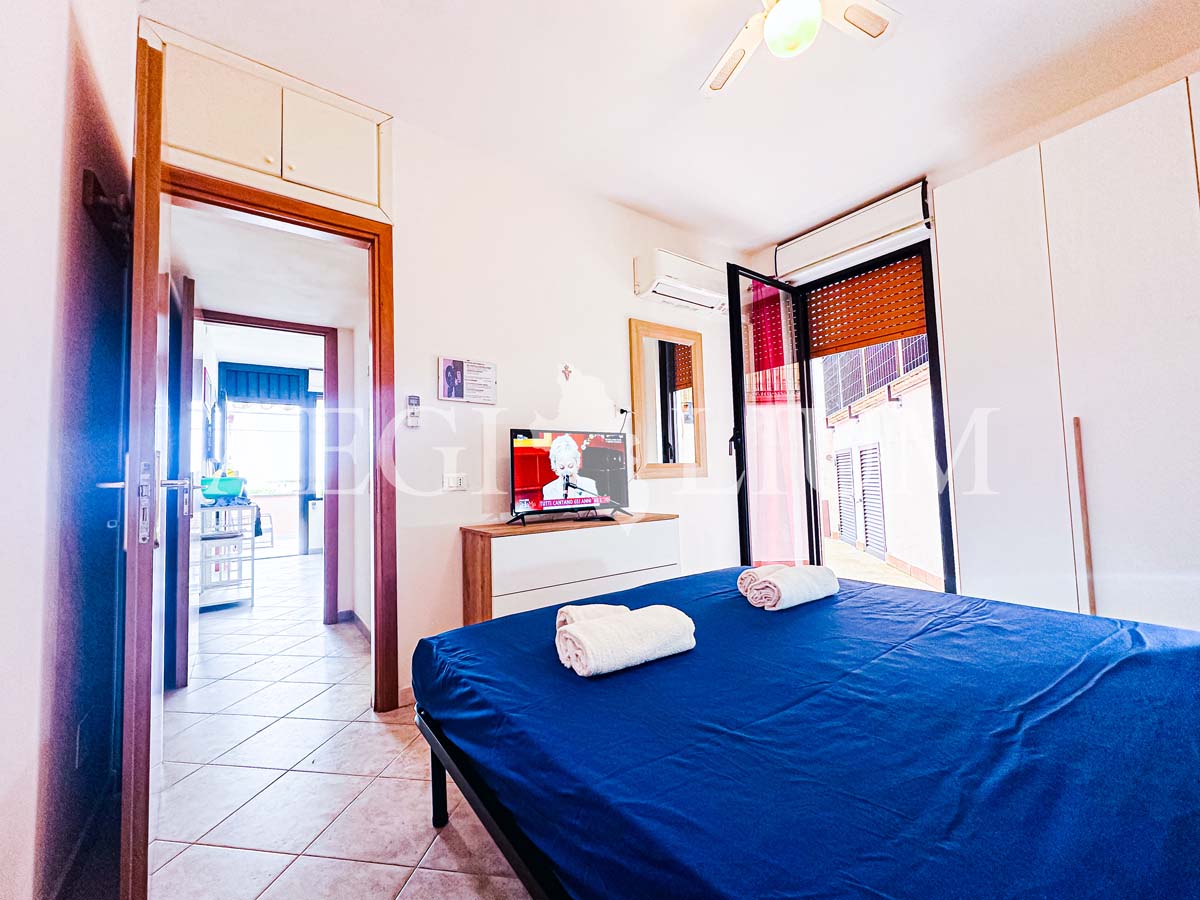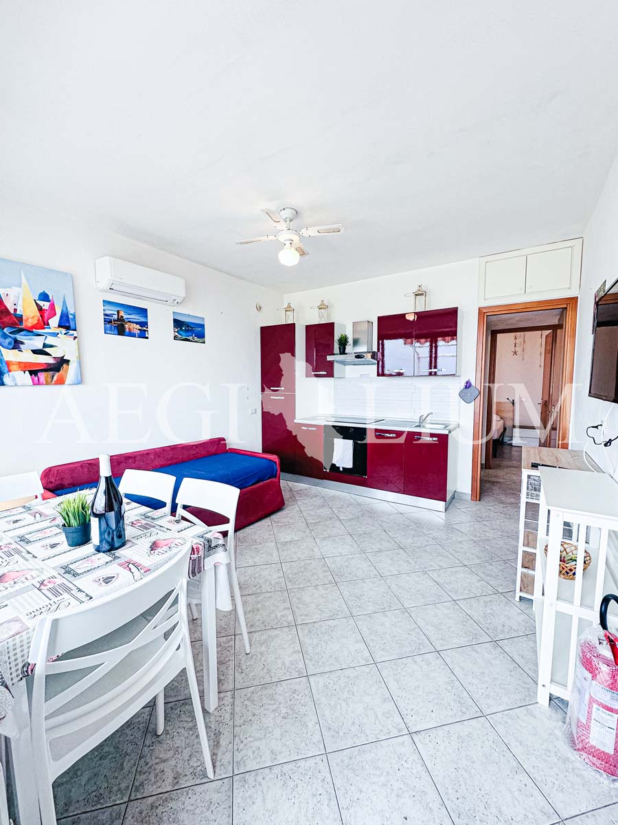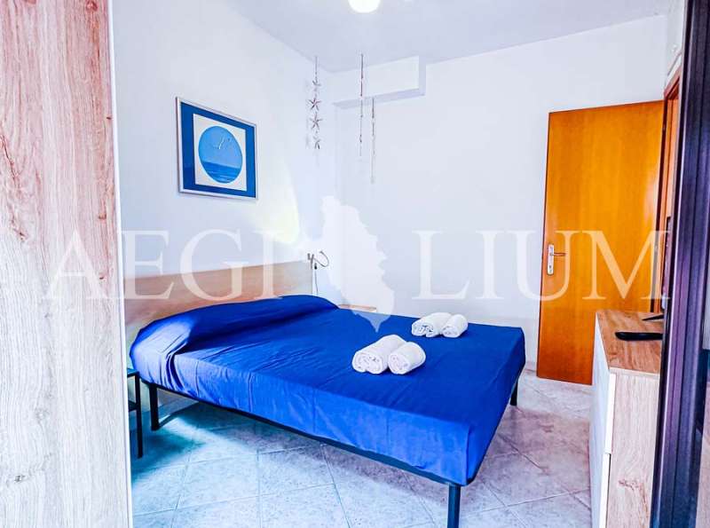 L'appartamento ha un arredamento moderno ed è composto da: una camera matrimoniale con tv, ventilatore a soffitto ed ARIA CONDIZIONATA, soggiorno con angolo cottura con piano cottura elettrico (usare al massimo due fuochi contemporaneamente), frigorifero con freezer, tv 40'', divano letto composto da due letti singoli, ventilatore a soffitto ed ARIA CONDIZIONATA, bagno con doccia e lavatrice, terrazzo (12mq circa) con vista mare attrezzato per mangiare fuori, un posto auto.