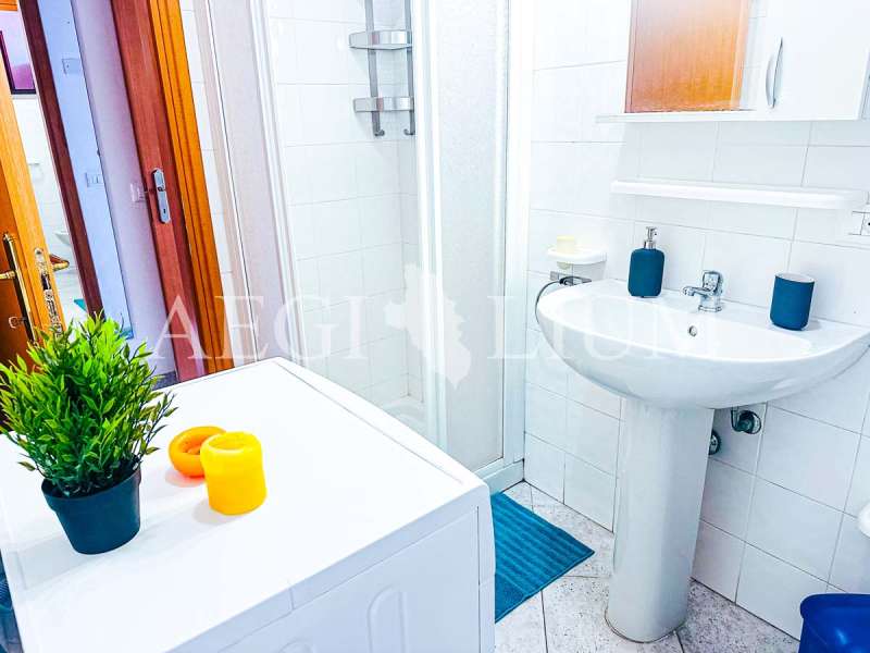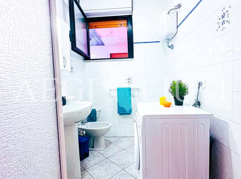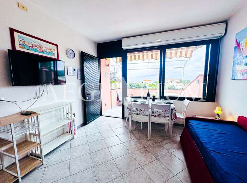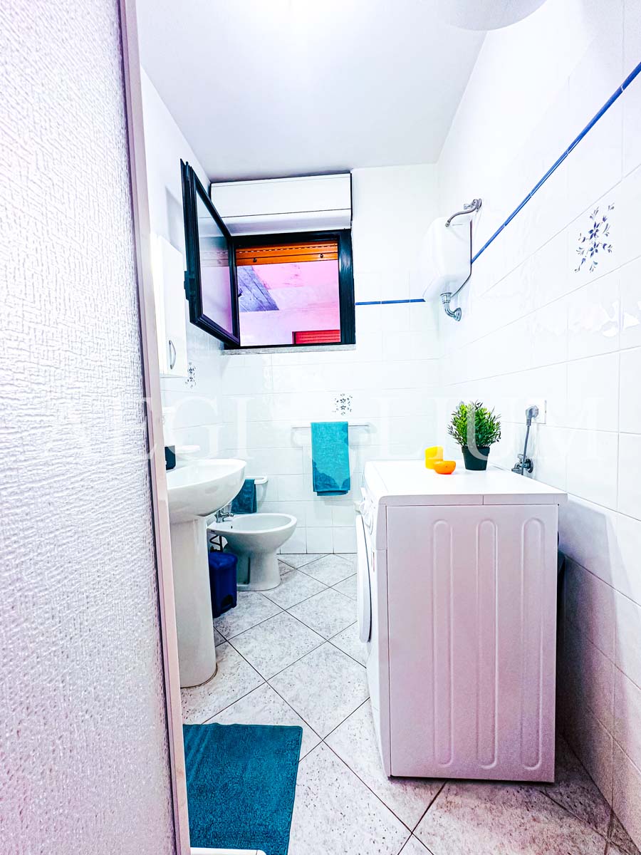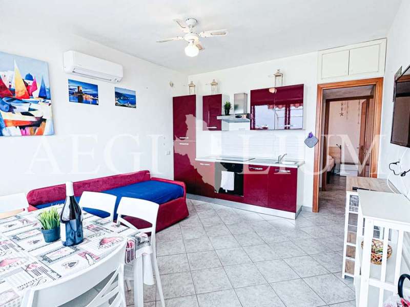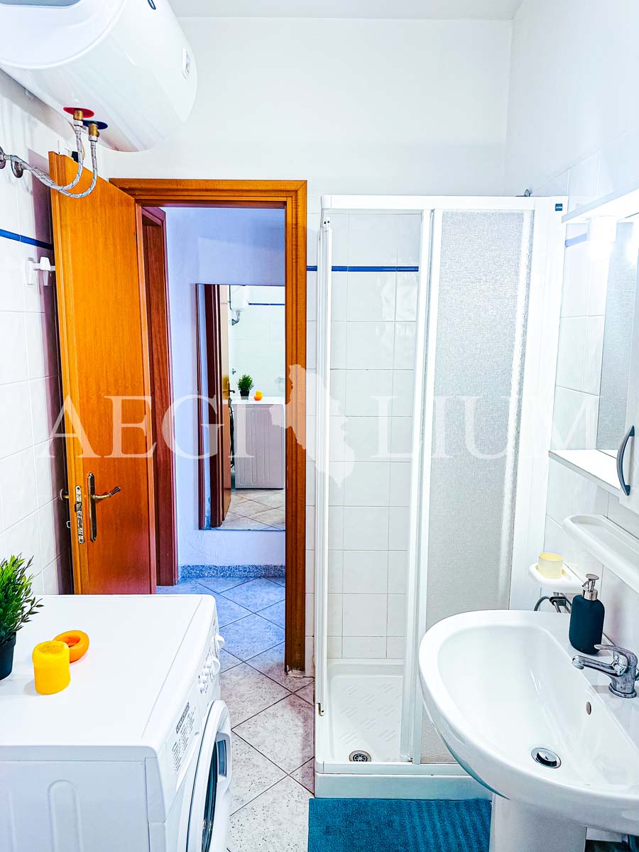 L'appartamento ha un arredamento moderno ed è composto da: una camera matrimoniale con tv, ventilatore a soffitto ed ARIA CONDIZIONATA, soggiorno con angolo cottura con piano cottura elettrico (usare al massimo due fuochi contemporaneamente), frigorifero con freezer, tv 40'', divano letto composto da due letti singoli, ventilatore a soffitto ed ARIA CONDIZIONATA, bagno con doccia e lavatrice, terrazzo (12mq circa) con vista mare attrezzato per mangiare fuori, un posto auto.