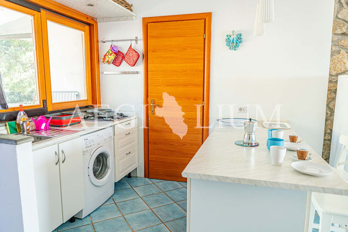 Si può arrivare vicino all'appartamento con la macchina percorrendo una stradina di cemento 200 metri (gli ultimi 100 metri sono in ripida salita). Dall'appartamento si può scendere in spiaggia usando un sentiero a gradoni di circa 250 metri.