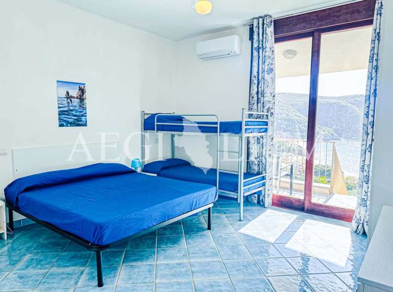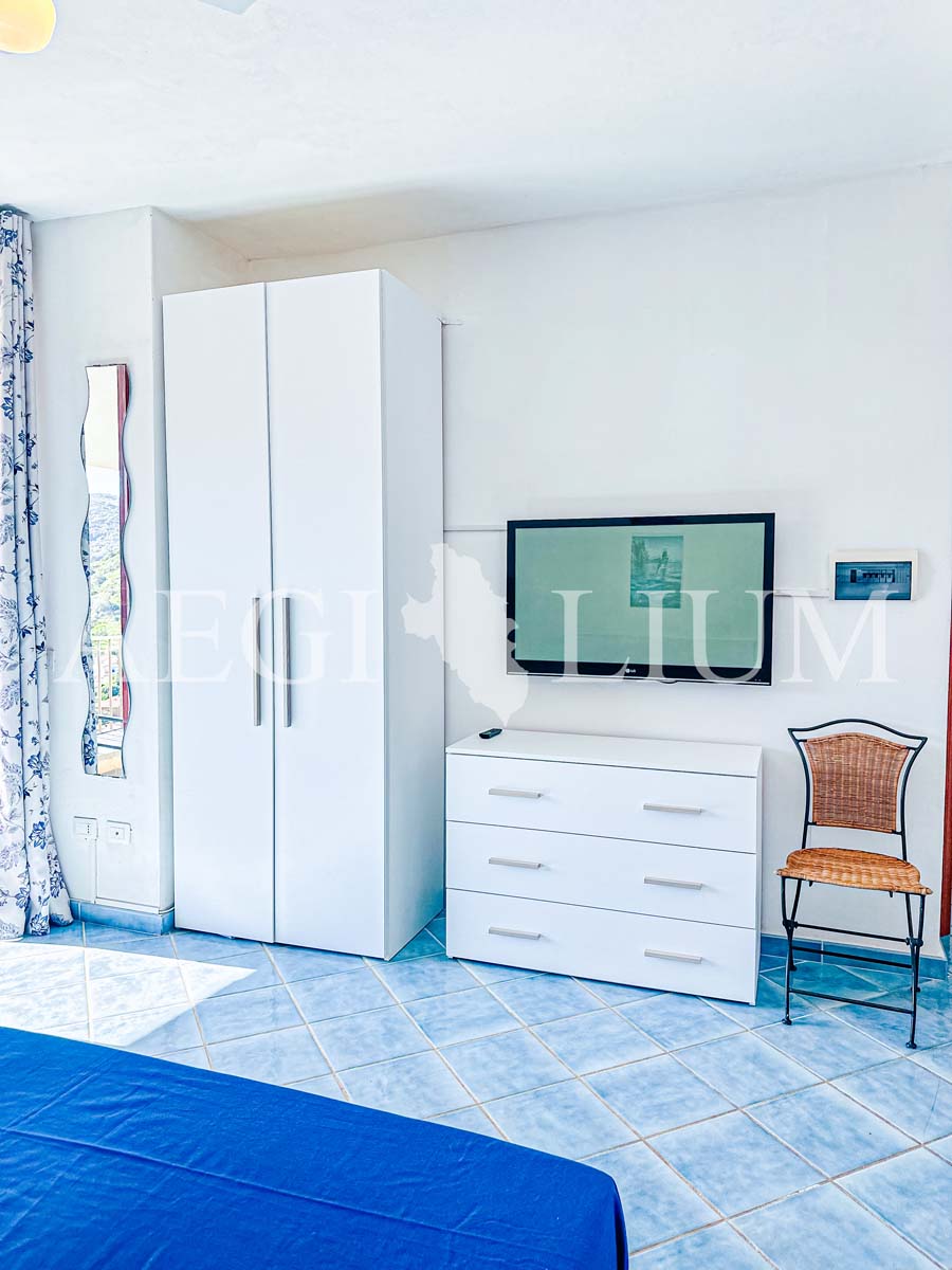 Villa Giglio Rosso è una stupenda villa composta da: soggiorno con angolo cottura con piano cottura a gas, due frigoriferi con freezer, lavatrice, divano letto matrimoniale alla francese (140x200cm), tv 48'' e ventilatore a soffitto, prima camera matrimoniale vista mare con tv, ventilatore a soffitto ed ARIA CONDIZIONATA, seconda camera da letto matrimoniale con ventilatore a soffitto, terza camera con letto matrimoniale, letto a castello, tv 40’’, ventilatore a soffitto ed ARIA CONDIZIONATA, due bagni con doccia, grandissimo terrazzo vista mare attrezzato per mangiare fuori, due posti auto (un posto auto adiacente all'abitazione ed un posto auto riservato nel parcheggio del campo sportivo).