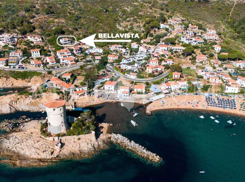 The apartment Bellavista (3 beds) is located in Giglio Campese about 300 meters from the beach (the last 120 uphill on a dirt road) at 30 meters above sea level.